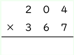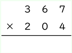 *1:この計算でかける数の各桁は「3」「6」「7」となっていますが,これより小さい数,例えば2だと,204×2=408です。「二四が8」で,一の位に8を書いたあと,十の位に0を書く必要が出てきます。